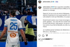 拉比奥特写道:“亲爱的马赛球迷,在我开启米兰的新冒险之前,我想给你们写一条留言。从我第一天抵达马赛开始,你们从未在意我过去在巴黎的经历,反而立刻接纳了我,把我当成马赛人,直到我离开。”