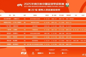 体育资讯9月13日讯 中国足协官方公布中甲第22轮裁判人员安排,其中广西平果vs大连鲲城和青岛红狮vs佛山南狮两场比赛安排有VAR裁判。